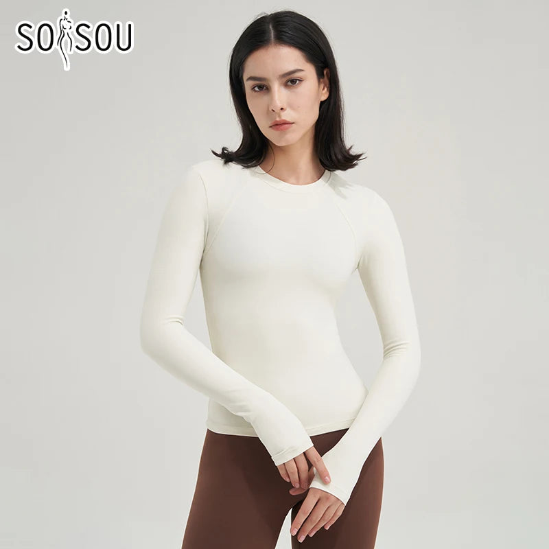 SOISOU Nylon Gym Top Yoga Shirt Fitness Sport Women Clothing Elastic Breathable Pilates Long Sleeve Tops 5 Colors 4 Size