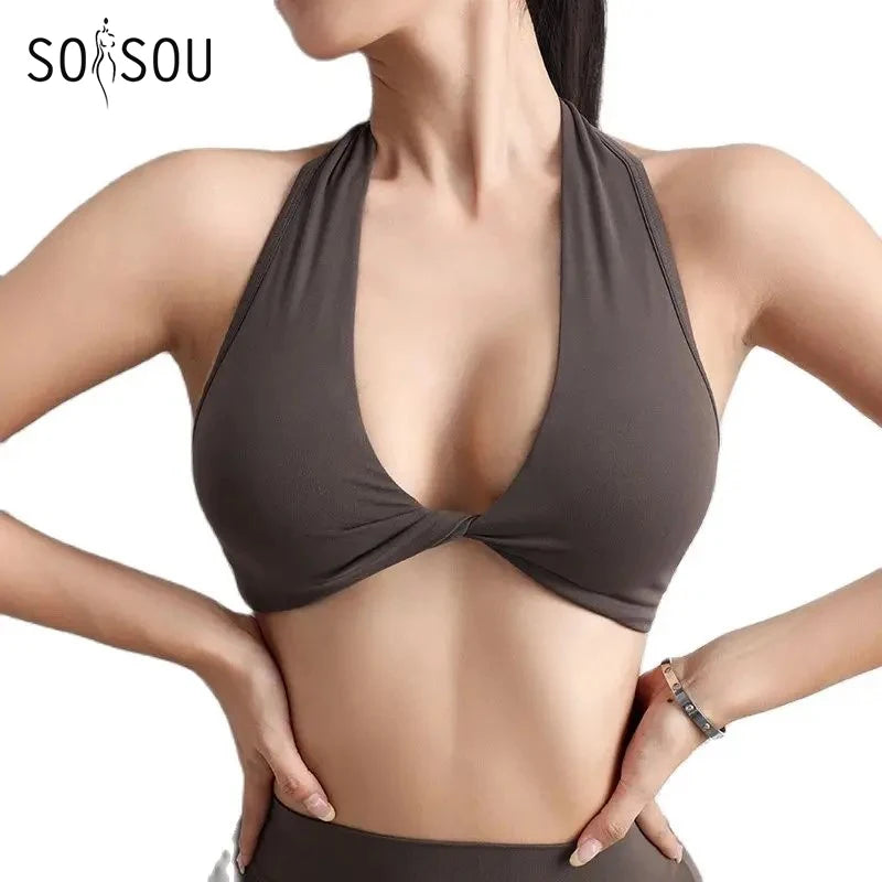 SOISOU Nylon Sexiest Bra Gym Sport Yoga Bra For Women Elastic Tight Breathable Chest Pad Removable Top Women Bikini 6 Colors