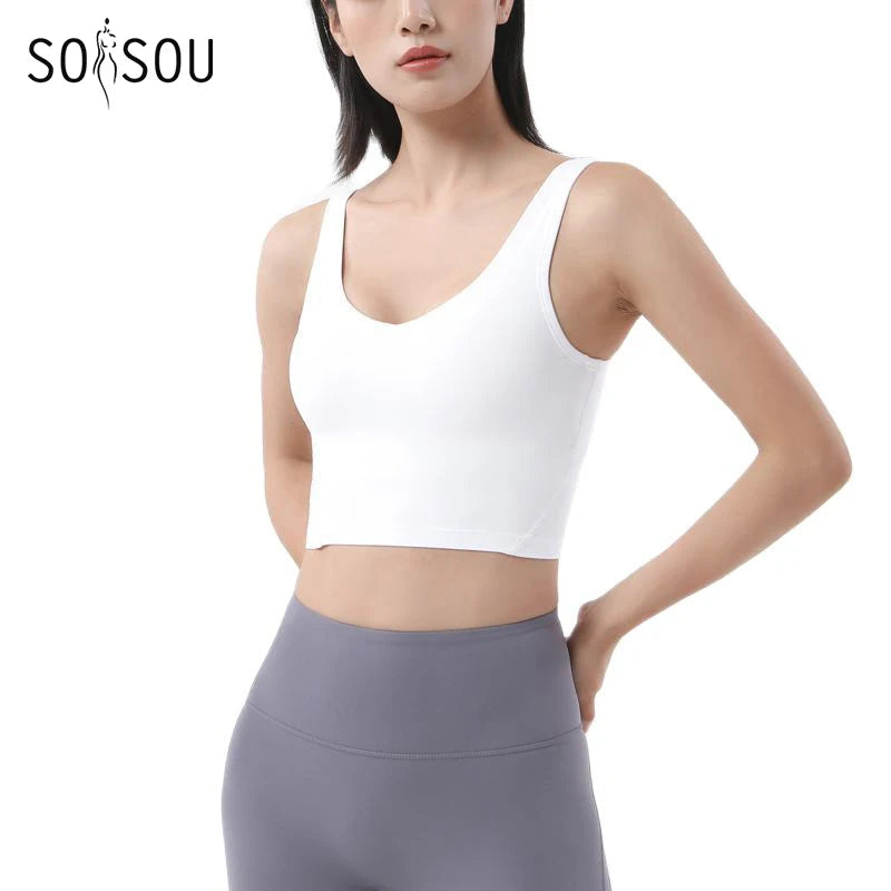 SOISOU Nylon Sports Bra Women's Crop Top Breathable Yoga Bra Gym Fitness Sportswear Sexy Women's Sports Underwear 6 Colors