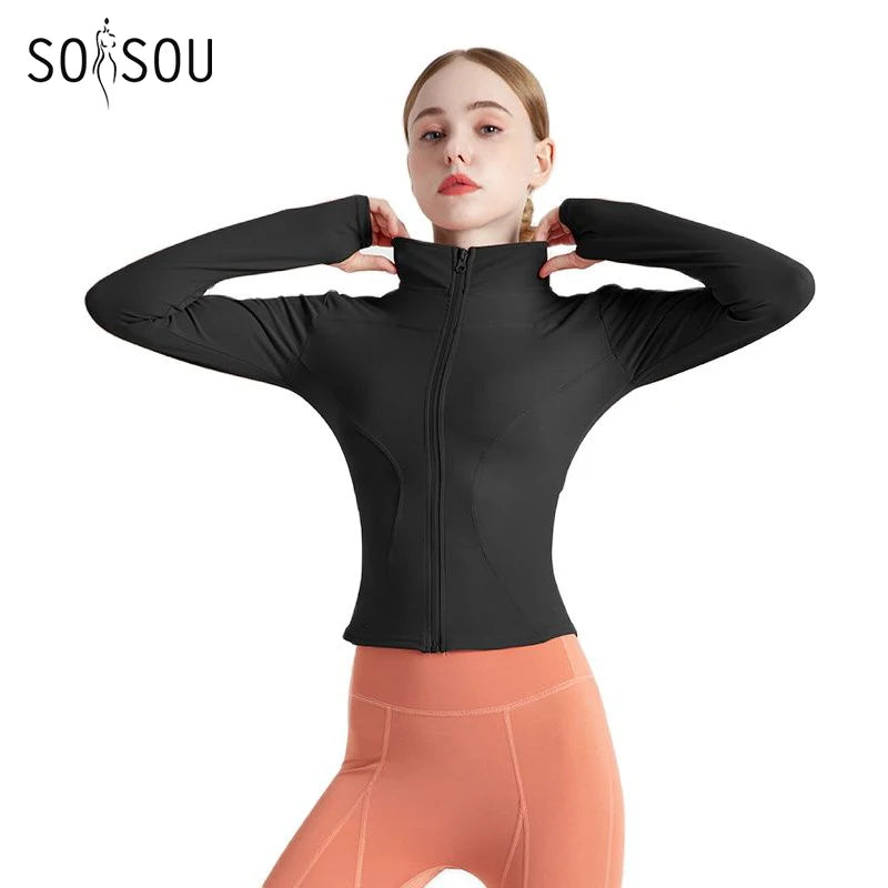 SOISOU Women's Jacket Yoga Sport Gym Coat Athletic Fitness Tight Fit Long Sleeved With Thumb Holes Jacket Womens Clothing